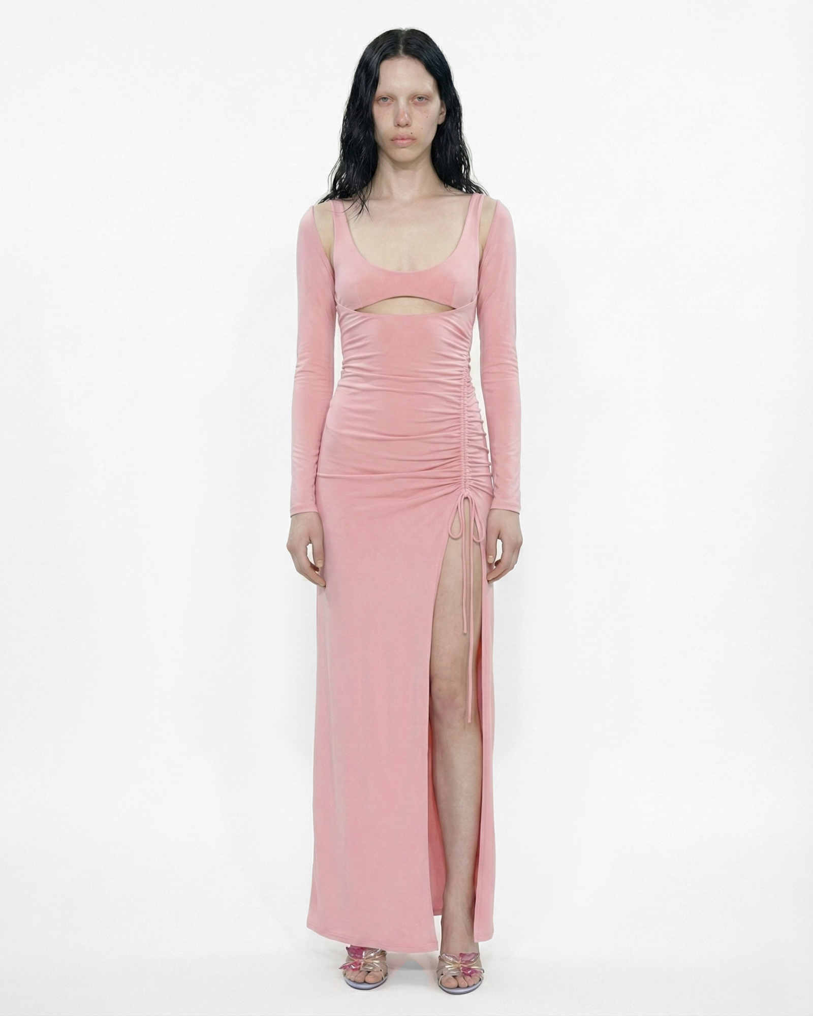 MAXI JERSEY DRESS WITH DEEP SIDE SLIT IN PINK