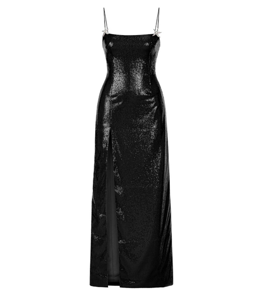 SEQUINED SLIT DRESS IN BLACK