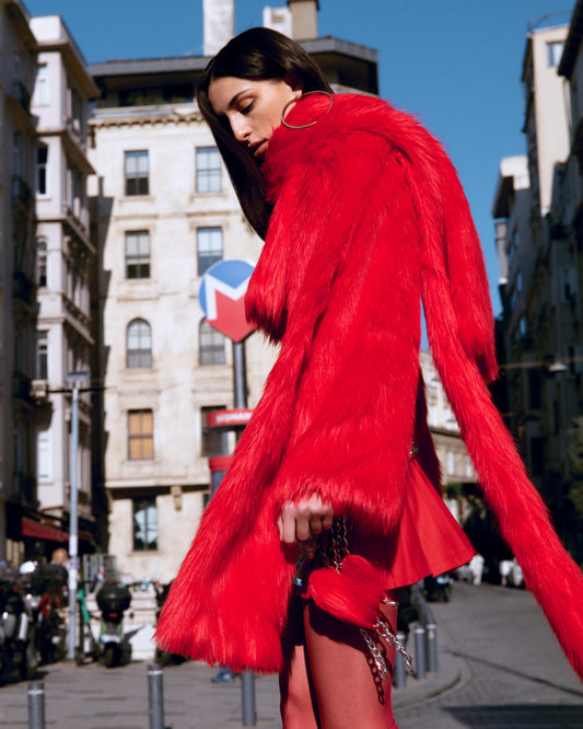CROPPED FAUX FUR COAT WITH SCARF DETAIL