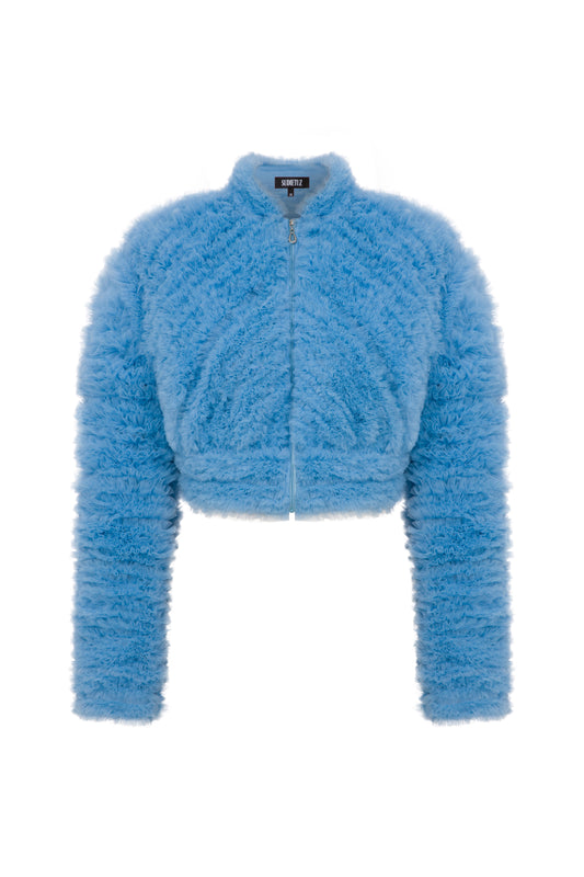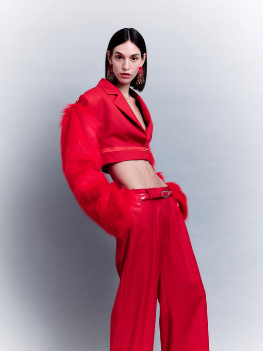 CROPPED JACKET WITH REMOVABLE FAUX FUR SLEEVES