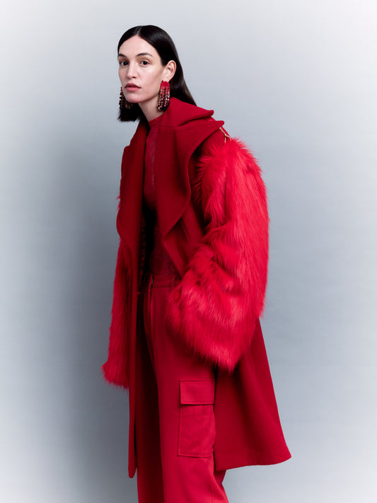 OVERSIZED COAT WITH REMOVABLE FAUX FUR SLEEVES