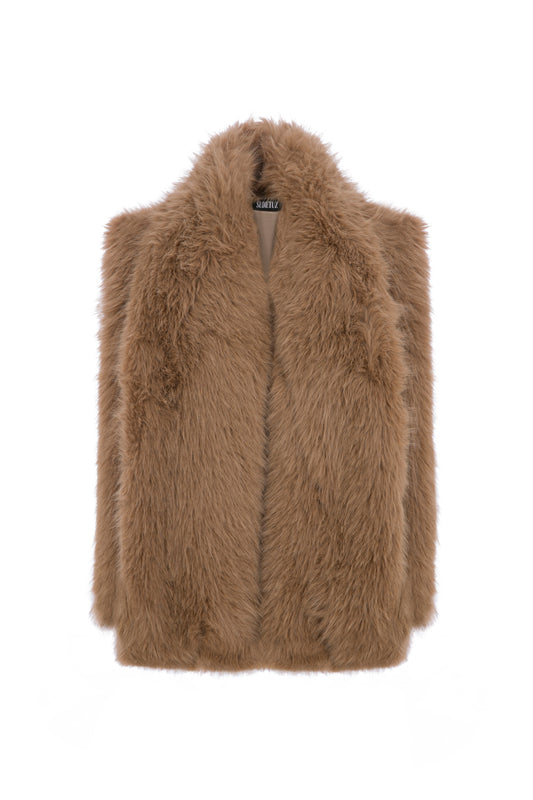 FAUX FUR VEST WITH ATTACHED SCARF