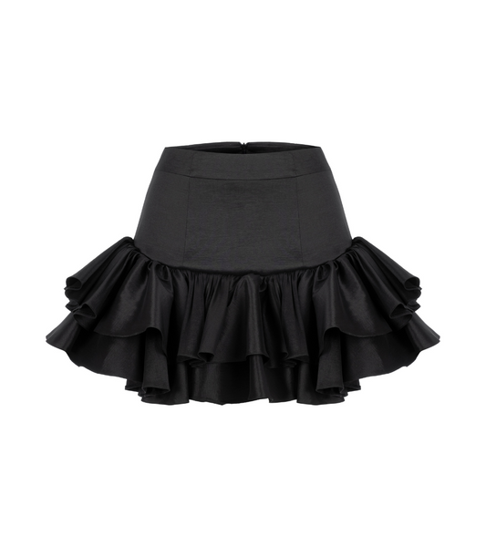 JERSEY MINI SKIRT WITH RUFFLES IN RUSTIC TURQUOISE