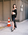 RHINESTONE JERSEY DRAPE TIE SKIRT