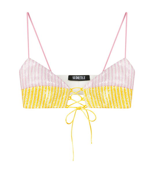CROP TOP WITH BEADWORK EMBELLISHMENT SPIRALS