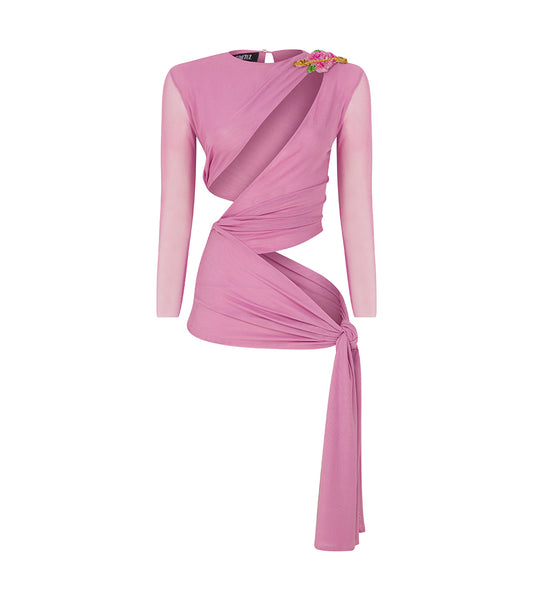 TOP WITH CUTOUTS & HANDMADE FLOWER ACCESSORY