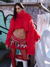 CROPPED FAUX FUR COAT WITH SCARF DETAIL