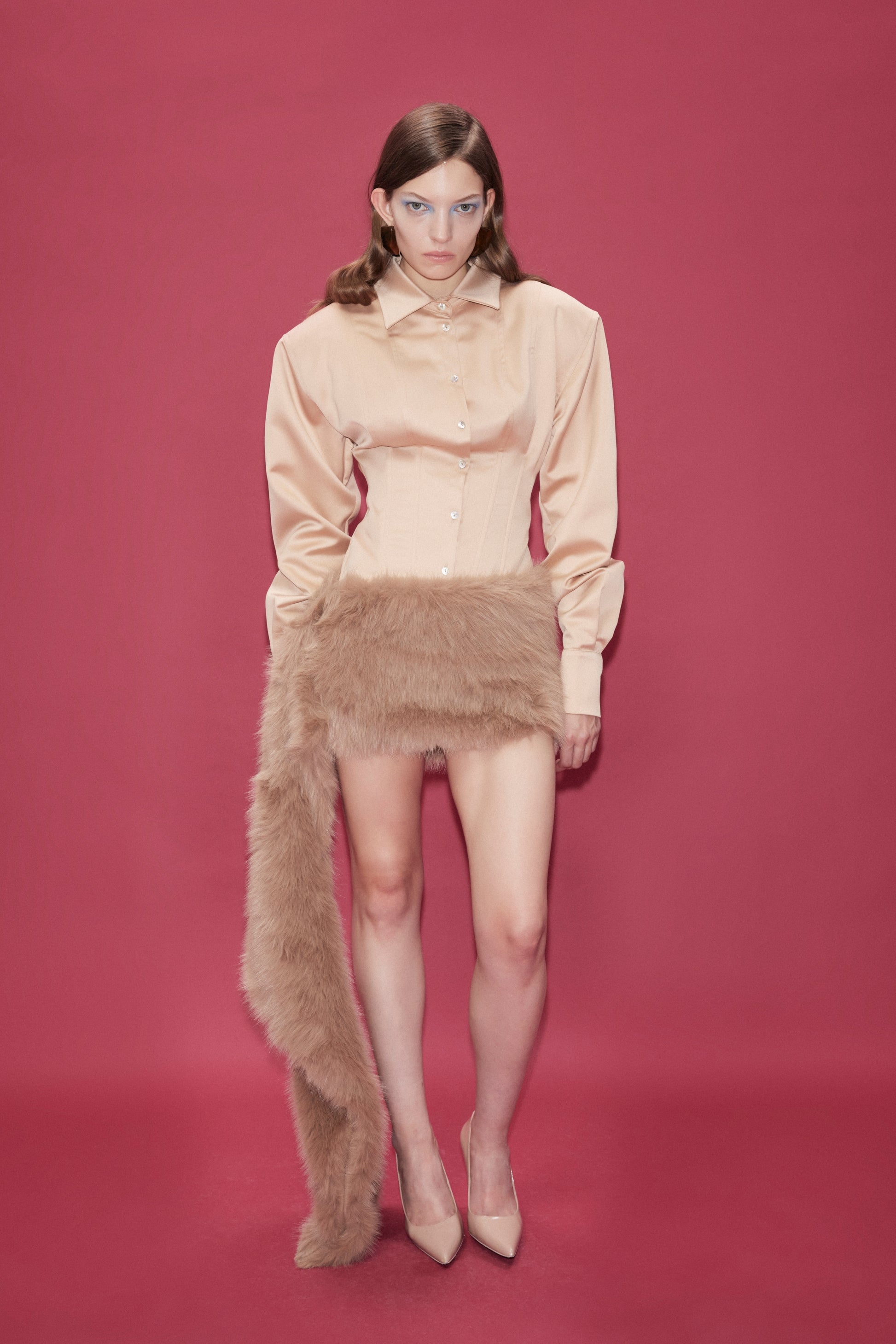 FAUX FUR MINI SKIRT WITH SIDE TRAIN DETAIL