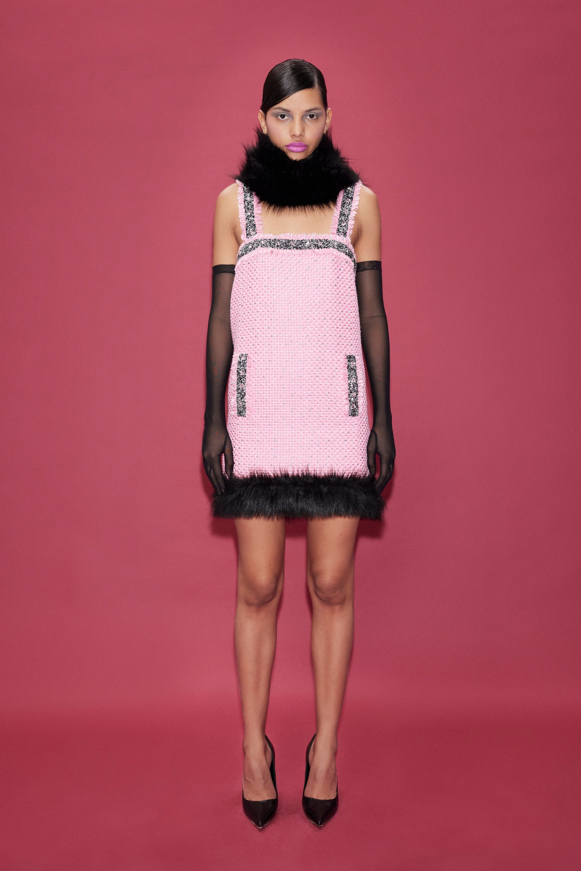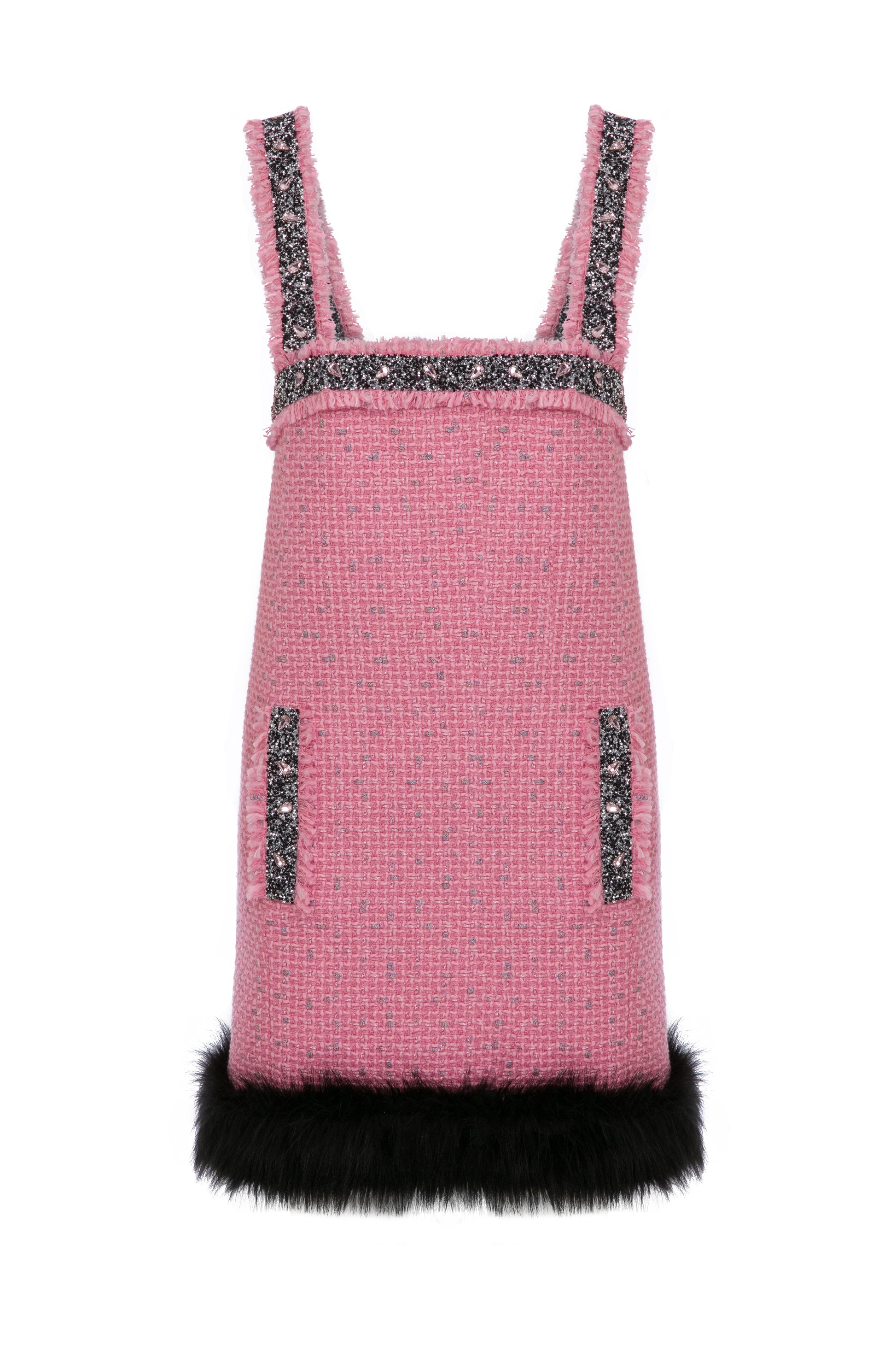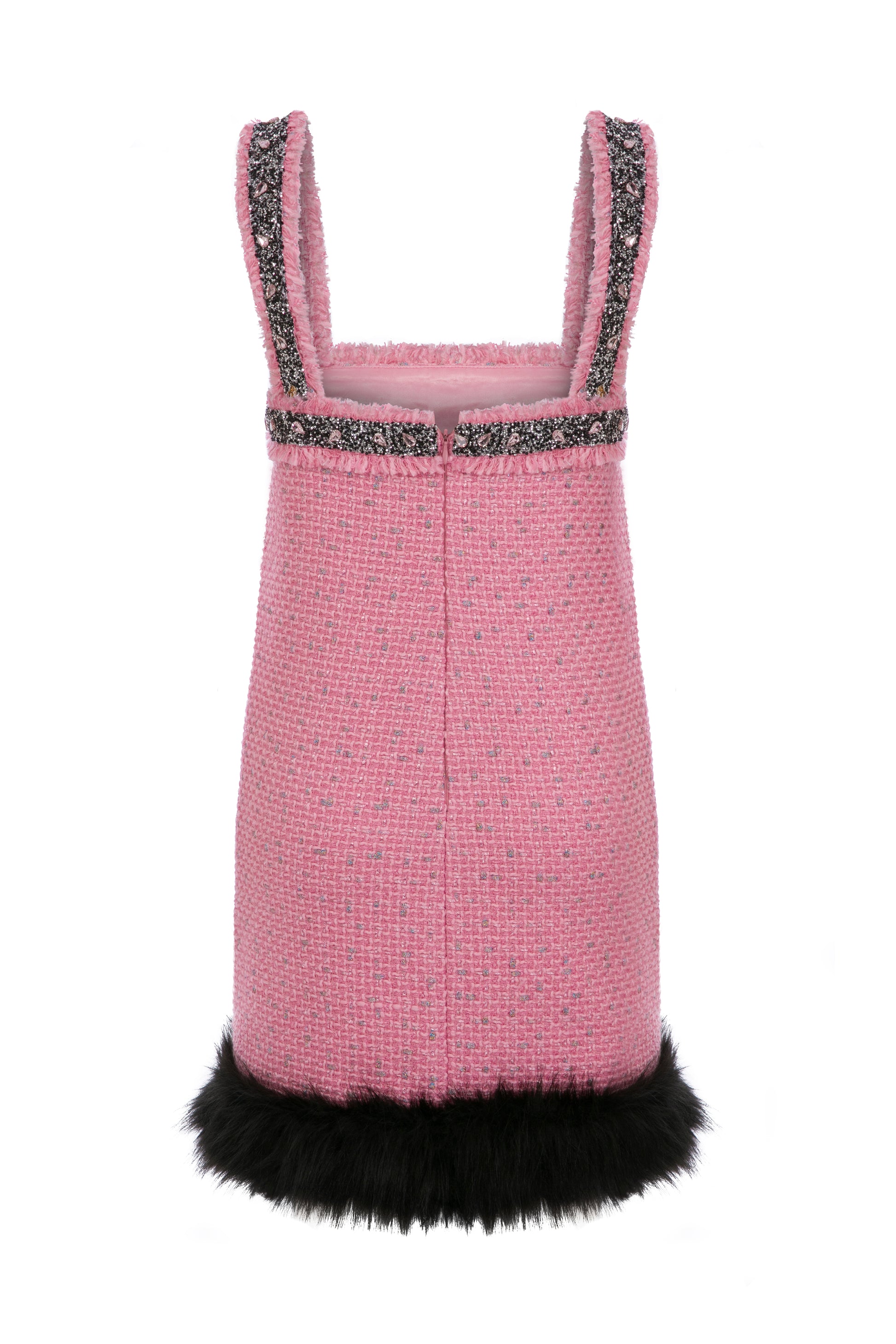 TWEED MINI DRESS WITH RHINESTONE AND FAUX FUR TRIMMINGS